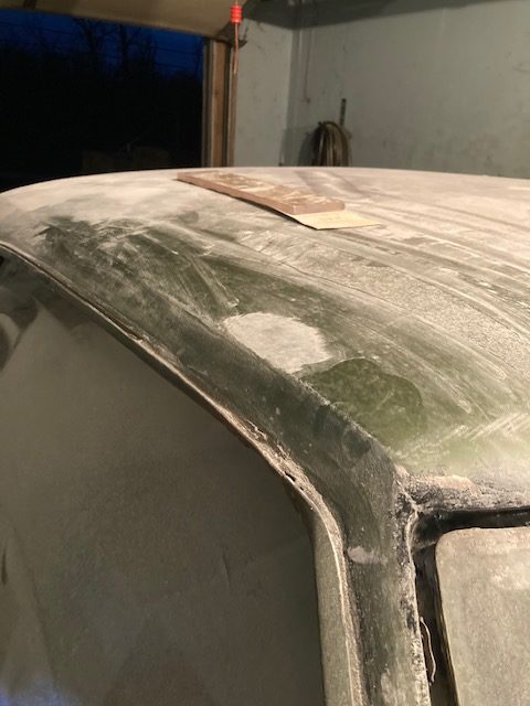 As you know with restoring 40-60 year old cars, the auto body work never seems to end. I found more dings on the hardtop to grind out.