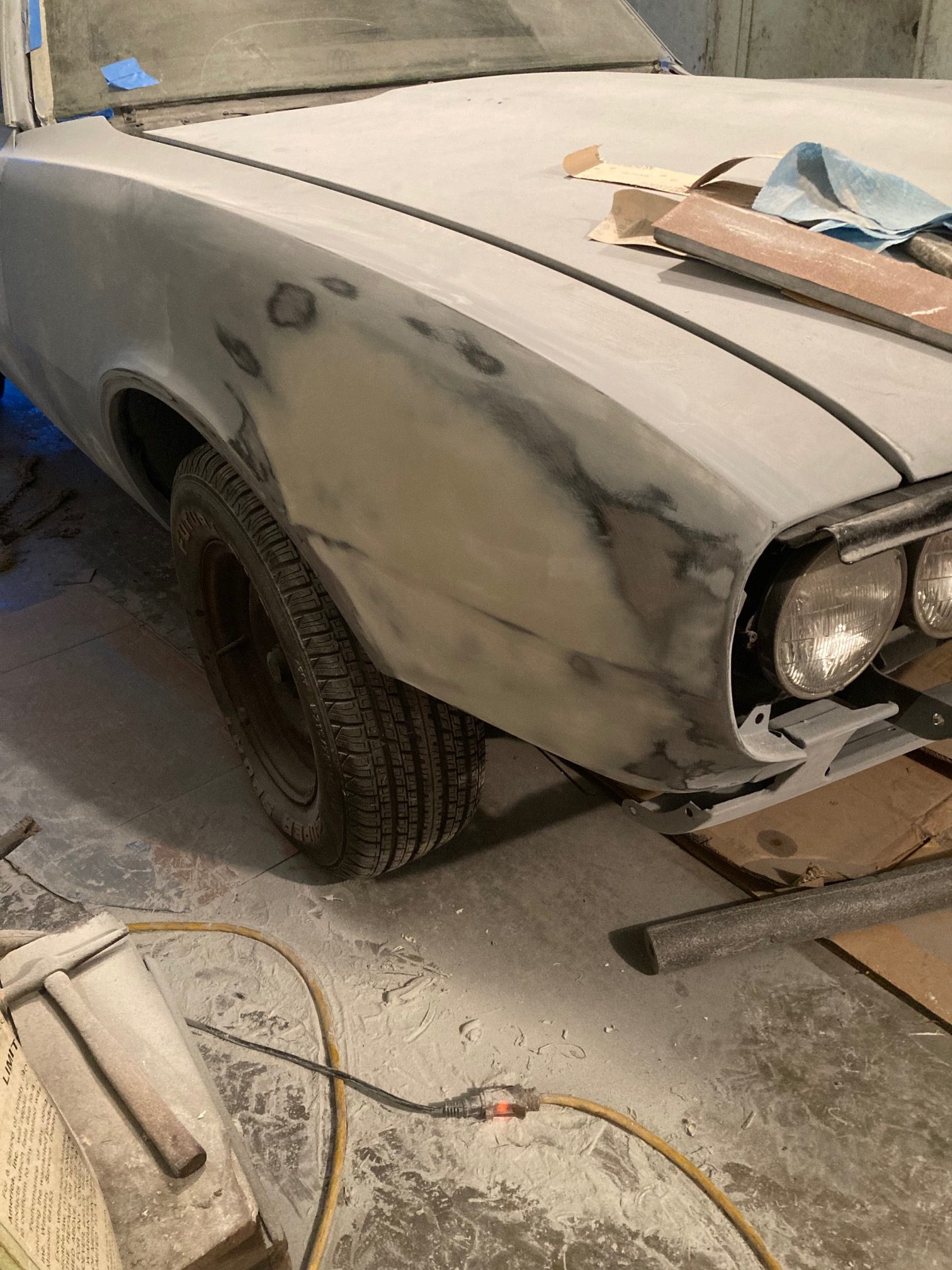 I accidentally created more work for myself today by putting a big dent in the passenger side of the front fender and this was the side with the new fender!