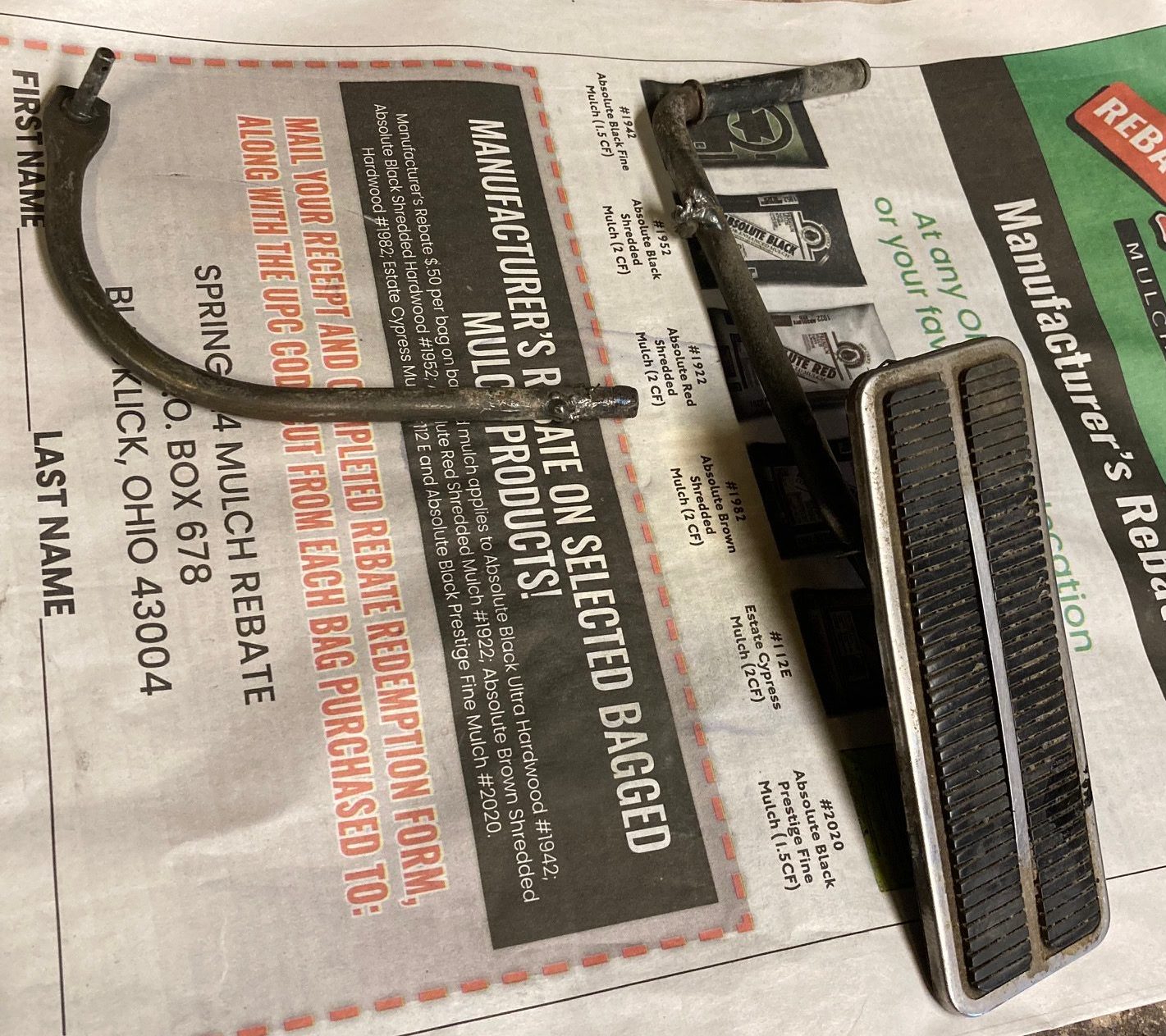 After moving the car out of the garage so the primer could bake in the sun, the gas pedal broke at the weld.