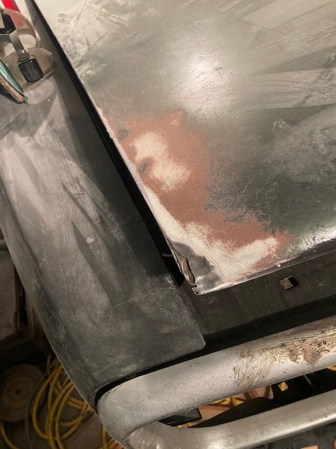 About 15 years ago we roughly filled a weird rust spot on the front corner of the hood.