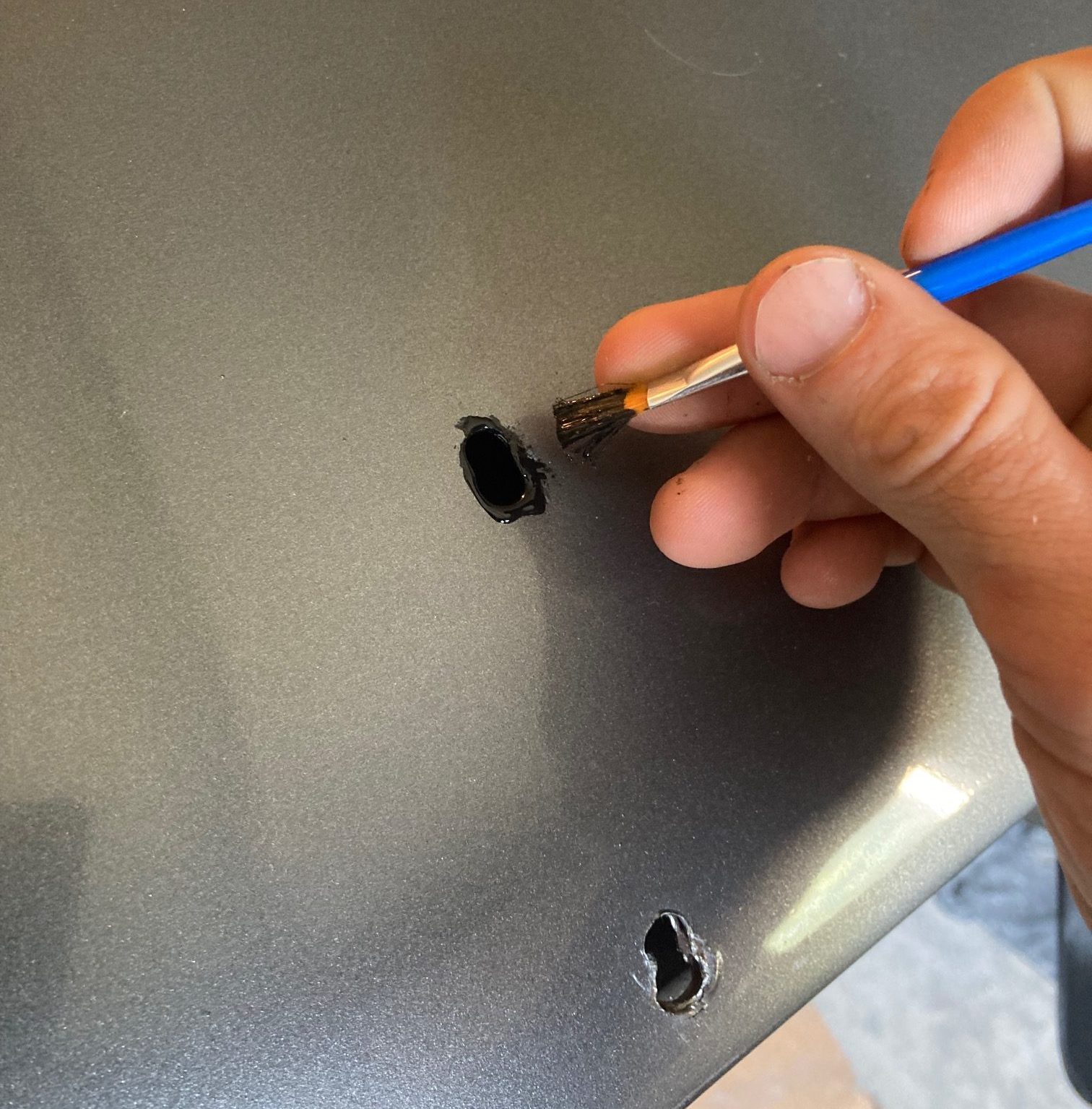 Then I covered any bare metal inside the holes with rust oleum paint to protect it from rusting.