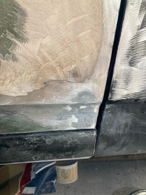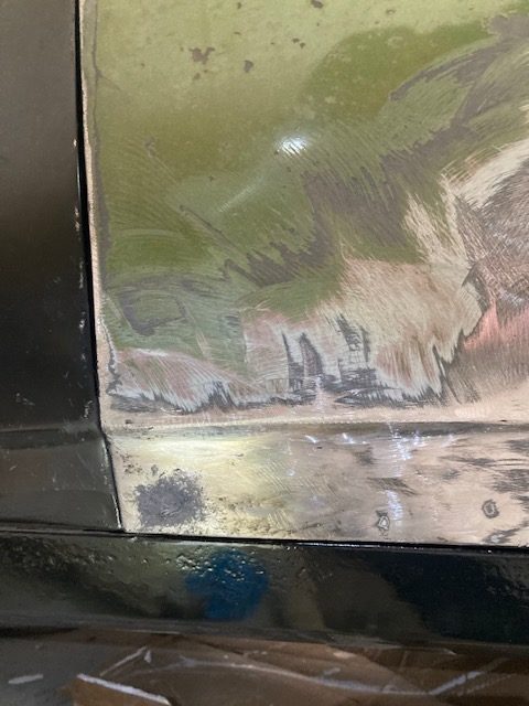 I thought of trying something different. I cleaned out the rust, painted the inside with rust oleum rust and seal, then sealed up the small rust holes on the passenger door panel with JB weld. I even pushed in fiberglass mixed in with the JB weld to give it structure.