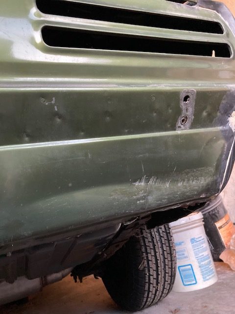 I now have most of the large body putty fills completed except one last dent in the rear panel underneath the bumper.
