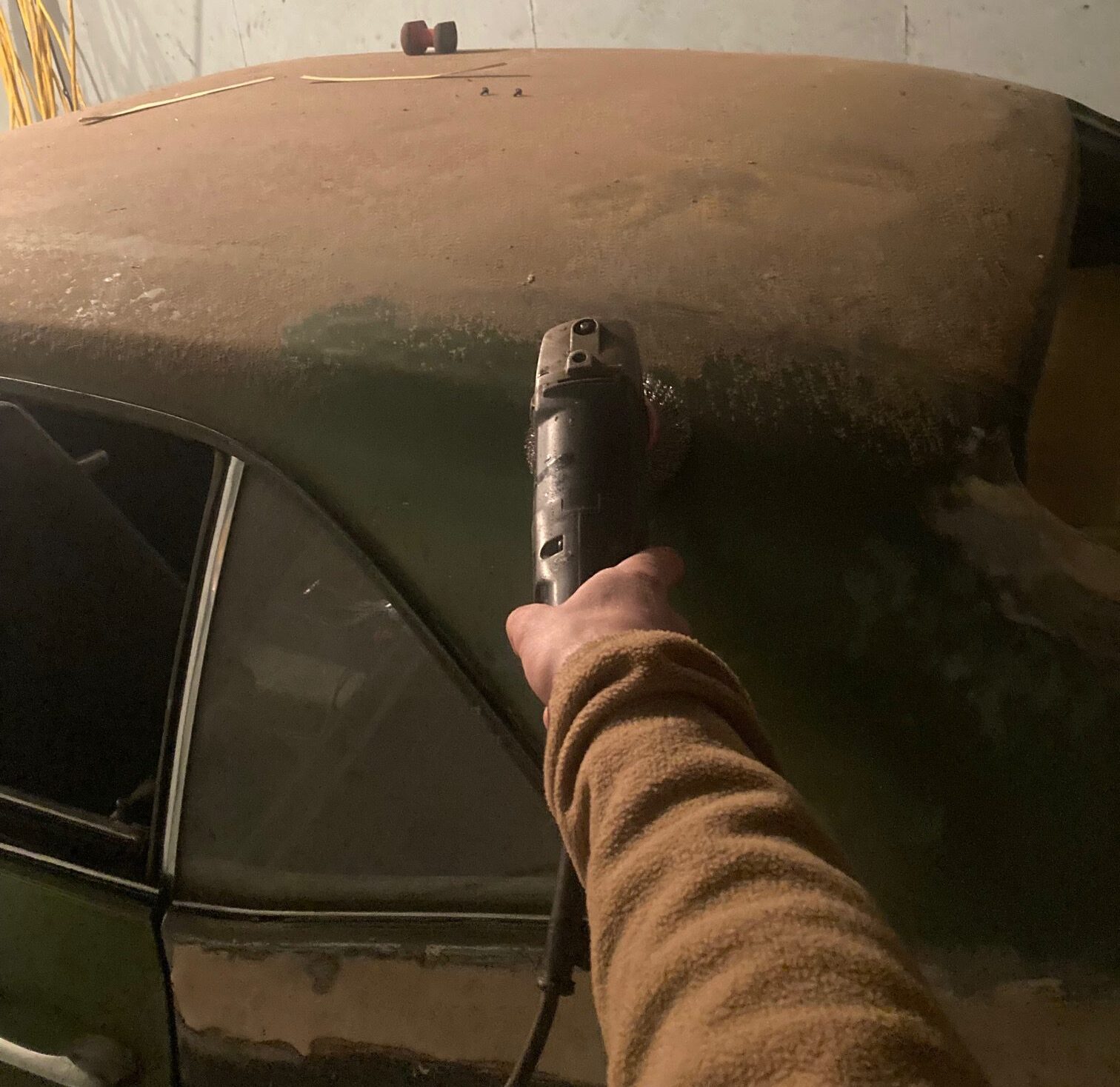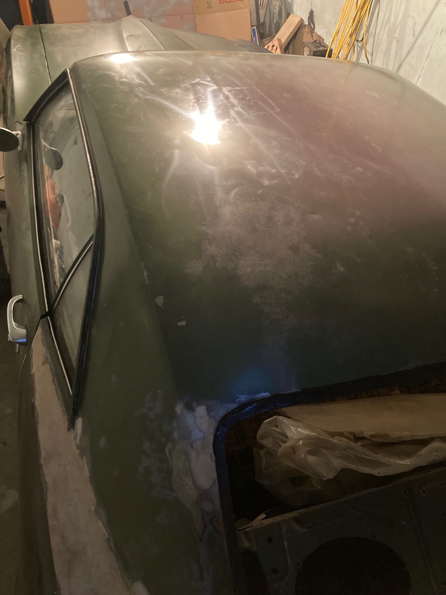After cleaning it all off, I found 2 large dents or bows down near the back. It’s hard to tell from the picture but they were rather large. I tried to hammer them up a little but was difficult and there was not a lot of space inside to hit it. So onto body putty with these