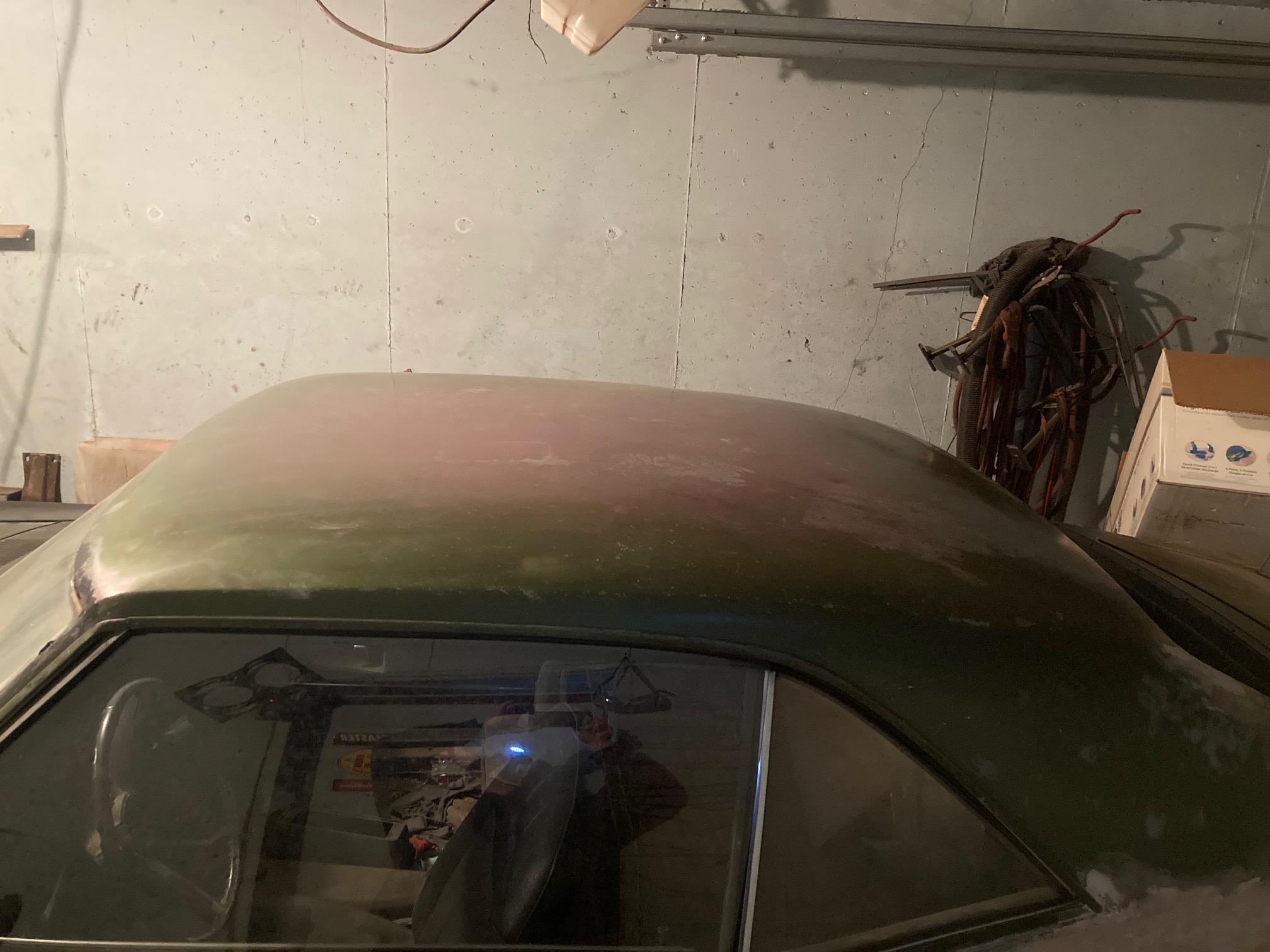 • The vinyl hardtop was removed several years ago with the use of a scraper. Then Removing the adhesive that was left over from the vinyl was quite a pain to deal with.